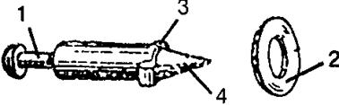 Рис. 164 Ударник и шайба ударника 1 – проточка для вилки спускового рычага, 2 – шайба ударника; 3 – выступы для упора шайбы;4 – жало.