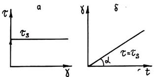 Рис. 1.22. Схема тела Ньютона N -тела) Рис. 1.23. Зависимость t (g) (а) и поведение тела Сен- Венана при t = ts (б)