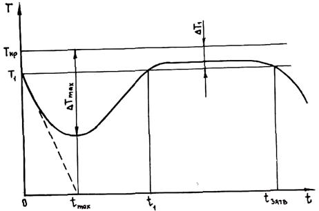 Рис. 2.17. Изменение температуры расплава при его объемной кристаллизации