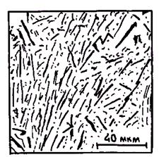 Рис. 2.40. Влияние скорости охлаждения на Рис. 2.41. Пример сложнорегулярной строение фазы графита серого чугуна: эвтектической структуры а — малая скорость; б — большая скорость