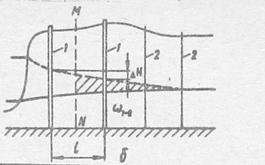 Де l – відстань між свердловинами, ω − площа насичення пласта за час t, що визначається планіметруваням на схемі; n − число різниць рівнів у свердловинах визначені через рівні проміжки часу t, включаючи різницю рівнів перед паводком ΔН1; Для більш точного визначення площі епюри насиченості рекомендується створ з 3-4 свердловин.