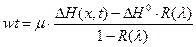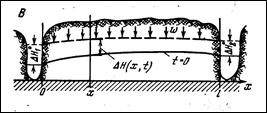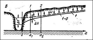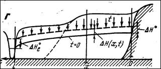 ∆H(x,t) − зміна рівня на відстані (х) за час (t)