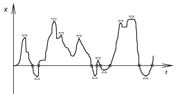 Все характеристики должны быть получены для всех стационарных участков типового полета и движения самолета по ВПП. В простейшем случае для полета принимаются три исходных значения При описании модели непрерывного процесса нагружения указываются вероятностные характеристики последовательности стационарных участков, каждый из которых характеризуется средним значением напряжения