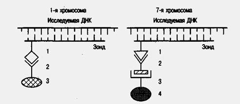 Рис.39. Схема двойной специфической флюоресцентной гибридизации in situ