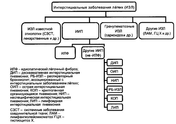 Рис. 6-1. Классификация диффузных паренхиматозных заболеваних лёгких (Пульмонология. Национальные рекомендации, 2009).