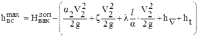 Из выражения (10.9) можем определить максимально возможную высоту установки насоса над поверхностью жидкости, т.е. высоту всасывания