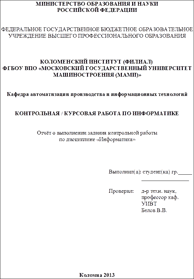 Варианты заданий К КОНТРОЛЬНОЙ РАБОТЕ