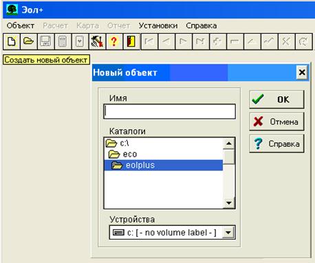 Создание нового объекта Для создания нового объекта следует выбрать пункт меню «Объект/Создать».