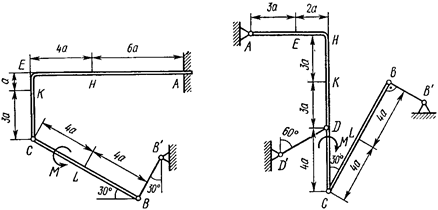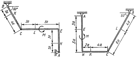 Внешними связями, наложенными на конструкцию, являются в точке На каждую конструкцию действуют: пара сил с моментом Определить реакции связей в точках Таблица С1