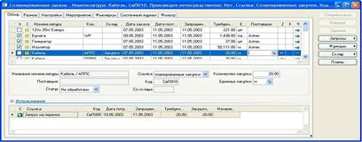 Рис. 3 - Спланированные системой «DYNAMICS AX» закупки В состав современной ERP-системы входит следующий набор подсистем: - производство, дополненное управлением данными об изделии PDM (Product Data Management), детализированным планированием ресурсов FRP (Finite Resource Planning) и усовершенствованным планированием и составлением производственных графиков APS (Advanced Planning and Scheduling); - снабжение и сбыт, включая управление цепочками поставок – SCM; - запасы; - техобслуживание оборудования; - послепродажное обслуживание произведенной продукции; - кадры; - научные исследования и конструкторские разработки; - бизнес-интелект (Business Intelligence), использующие технологии OLAP и системы поддержки принятия решений DSS (Decision Support Systems); - финансы. Различия между двумя системами (MRP II и ERP) вытекают из их функционального назначения: MRP II-системы созданы для использования преимущественно на промышленных предприятиях, а сфера применения ERP-систем не имеет отраслевых ограничений. Другие отличия ERP-систем от MRP II-систем: - поддержка планирования ресурсов по различным направлениям деятельности предприятия (не только производство продукции); - обеспечение полного спектра инструментов автоматического управления себестоимостью; - поддержка планирования инвестиций в производство новых изделий; - возможность планирования и управления ресурсами сложного многопрофильного предприятия, корпорации. ERP-системы переняли у MRP-систем способность отслеживать состояние производственных ресурсов и складских запасов. Это делает возможным получение оперативной информации о сроках конкретных поставок, ценах индивидуальных заказов и т.п., что является необходимым условием использования электронных систем закупок. ERP-системы обеспечивают возможность полного сквозного учета и контроля информации, связанной с прохождением заказа по следующей цепочке: заявка от покупателя – расчет плановых показателей (себестоимость, срок производства и поставки) – оформление заказа – производственный заказ (резервирование производственных мощностей) – создание заказов на поставку комплектующих – учет прихода комплектующих, взаиморасчеты с поставщиками – учет списания комплектующих в производство в привязке к производственному заказу – учет характеристик выполнения производственного заказа – учет выпуска готовой продукции – учет поставки готовой продукции, взаиморасчетов с заказчиком – сравнение плановых и фактических показателей. Для этого обеспечивается: - автоматический расчет возможного срока выполнения и себестоимости каждого нового заказа с учетом текущей загрузки оборудования, наличия и сроков поставки комплектующих; - автоматическое формирование заявок на закупку на основе данных о запасах и плановом потреблении по всей номенклатуре комплектующих; - автоматическое формирование плана загрузки производства. Пример: Инвестором внедрения ERP-системы на Воронежской кондитерской фабрике (ВКФ) стала компания Sun Capital Partners. Использование ERP-системы, по утверждению рукодства ВКФ, позволило обеспечить достоверное планирование производства и закупок, точнее оценить себестоимость продукции. Она дает возможность связать многие предприятия отрасли, их поставщиков и дистрибьюторов таким образом, чтобы каждый из них мог корректно планировать выпуск продукции, ориентируясь не только на внутренние рес