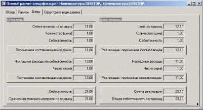 Рис. 5 - Данные о потреблении комплектующих, их себестоимости и цене для единицы продукции Дополнительно рассчитываются значения всех составляющих себестоимости продукции и цены продажи.