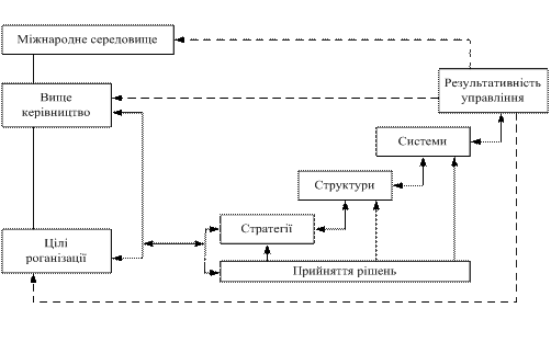 Рис. 4.3. Взаємозв’язок стратегій, структур і прийняття рішень з результативністю управління міжнародною компанією