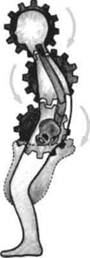 нут через пять вы снова ляжете прямо, одна сторона вашего тела покажется вам более длинной. Но к чему все эти длинные отступления? Благодаря позвоночнику верхняя часть корпуса является очень подвижной структурой, труднее всего подчинить ее своему контролю и особенно трудно обрести равновесие в движении. Итак, сядьте на табуретку и еще раз повторите движение перекатывания таза (см. главу о тазе). Если вы будете при этом внимательно наблюдать за собой, то заметите, что движение в области таза, как и движение во всем туловище, протекает подобно цепной реакции. Собственно, все это сводится к очень простому показателю: если положение таза правильное, то и положение туловища находится в норме. К сожалению, справедливо и обратное: без правильного положения таза невозможно правильное положение туловища. Поэтому таз, как нижний строительный элемент, должен всегда находиться в правильном положении (рис. 4.13). Как же можно проверить, что остальные строительные элементы правильно расположены над тазом? Нащупайте одной рукой самый нижний край грудины, а другую положите на верхний край лобковой кости. Если вы станете делать перекатывающиеся движения через таз, то заметите, что расстояние между вашими руками то сокращается, то увеличивается. При увеличении грудная клетка автоматически выпрямляется, а мышцы живота при этом удлиняются — еще один пример того, что мускулатура работает на удлинение, а не на сокращение! Но такие упражнения, как «складной ножик» и «откидное сидение» вы уже вычеркнули из своей гимнастической программы, прочитав главу о физиологии... Во время движения таза в поясничной области позвоночника осуществляются движения сгибания и распрямления, которые выше мы обозначили как основное направление движения в поясничной области позвоночника. Критической точкой является место перехода к грудному отделу позвоночника, которое осуществляет скорее вращательные движения, нежели сгибание и разгибание. Нередко приходится слышать, что в поясничной части позвоночника осуществляется рычаговое движение, т.е. вместо выпрямления в грудном отделе позвоночника внизу в поясничном отделе происходит как бы опрокидывающее движение, и вся грудная клетка перемещается назад — это часто встречающаяся неверная интерпретация выпрямления. Чтобы проконтролировать себя в этом случае, снова нащупайте нижний край грудины, а другой рукой нащупайте сначала подбородочную ямку, а затем верхний край грудины. Теперь еще раз подвигайте тазом. При этом вы заметите, что вперед выдвигается то одна, то другая рука. Ваша грудная клетка находится в прямом положении, когда обе руки по отношению друг к другу находятся на одной горизонтали. Сравните с фотографиями, приведенными в разделе 4.6. Другая не совсем простая возможность движения туловища — это смещение, которое принято называть трансляцией (рис. 4.14). При этом один строительный элемент смещается вперед или в сторону, хотя в отдельных позвонках не происходят наклон вперед, выпрямление или наклон в сторону. Положите руки, как вы это только что делали, на оба конца грудины и попробуй-