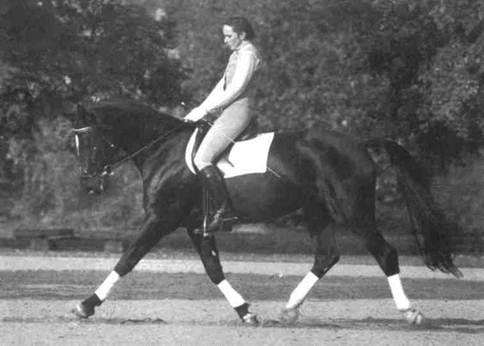 щественно нарушить баланс. Сядьте прямо, нащупайте мускулатуру спины и просто опустите голову вниз. Вы тут же почувствуете, как увеличилось напряжение в мышцах спины, т.е. равновесие мускулатуры существенно нарушается. Если вы отклонитесь назад с опущенной вниз головой, то путь, который вы должны проделать, прежде чем мышцы живота автоматически включатся в работу, будет значительно длиннее. Для верховой езды это означает, что у смотрящего вниз всадника отсутствует равновесие верхней части корпуса, при котором возможны быстрые и тонкие реакции на движение. Голову нужно держать свободно и в равновесии. На фотографиях (рис. 4.16 и 4.17) вы видите фатальные последствия неправильного положения головы, когда она неподвижна или выдвинута вперед. Сохранение равновесия на движущейся лошади является одним из решающих моментов для правильной езды верхом. Наш корпус внутри себя является подвижной системой, которая находит свое равновесие над тазом настолько незаметно, что выглядит так, словно он остался неподвижным. Однако научиться находить равновесие и балансировать можно только в процес-