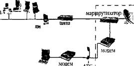 Для передачі інформації між комп'ютерами через телефонні лінії використовують спеціальні пристрої — модеми. Модем набирає телефонний номер, зв'язується з іншим модемом, перетворює цифрові дані в електричний сигнал спеціальної форми, придатний для передачі телефонними лініями, і здійснює прийом-передачу даних. Окремі користувачі можуть приєднатися до провайдерів за допомогою звичайних телефонних каналів, які називаються комутованими лініями (малюнок 3.6).