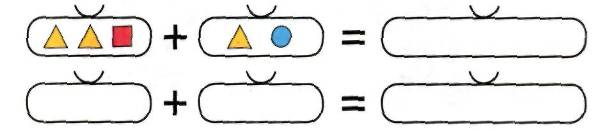 Разложи фигуры в мешки так, чтобы получилось верное равенство.