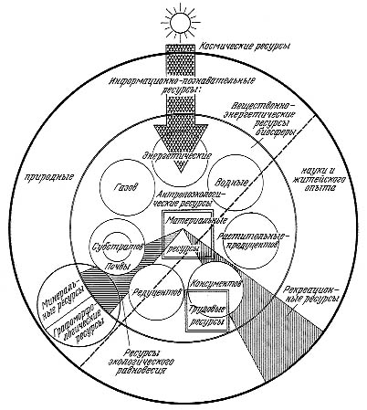 Ограниченность природных ресурсов, включая в это понятие и естественные условия развития человечества в историческом процессе, не могла не воздействовать на производительные силы общества, а через них на социальные отношения. Всегда наблюдалось соответствие между развитием производительных сил и природно-ресурсным потенциалом общественного прогресса. Этот закон следует из блока обобщений разделов 3.12 и 3.13. Кризисные ситуации возникают не только при дисбалансе в правой, но и в левой половине динамической системы: