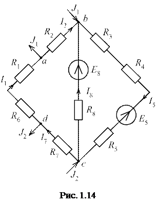 Выберем условно положительное направление токов в ветвях. В электрической цепи число ветвей В =7, источников тока ИТ =2. Система должна содержать число уравнений