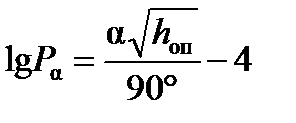 = 3,5·30» 100 м. Площадь такого круга S = p R 2 = 3,14·1002 » 30 000 м2» 0,03 км2. Известно, что в средней климатической полосе России 1 км2 поверхности земли поражается разрядами молнии в среднем 2,5 раза в год. Следовательно, 0,03 км2 будет поражен 0,075 раза в год, или один раз в 1/ 0,075 = 13 лет. Таким образом, одиночный стержневой молниеотвод высотой 30 м будет поражаться один раз в 13 лет. Предположим, что подстанция защищена 10 молниеотводами, у которых зона защиты определена с вероятностью 0,1 % (или 0,001 в относительных единицах). Тогда будем иметь поражение одного из 10 молниеотводов один раз в 1,3 года, при этом прорыв молнии произойдет в 0,001 случаев, т. е. один раз 1,3/0,001 = 1300 лет. Следовательно, для стержневых молниеотводов необходимость уточнения вероятности, с которой определены зоны защиты, не возникает. Линии электропередачи из-за своей протяженности очень часто поражаются молниями. Каждые 100 км ЛЭП поражаются 15–20 раз в год в средней полосе России, поэтому для ЛЭП расчет вероятности защиты с помощью тросов приобретает важное значение. Вероятность Р α прорыва молнии через тросовую защиту определяется по формуле