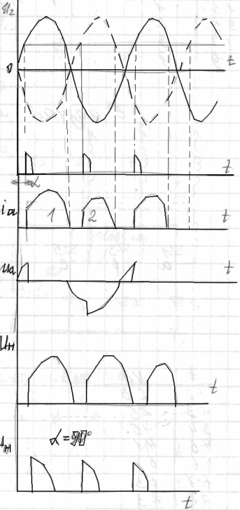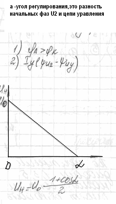 Схема упрв.выпрям. Временные диограммы a-угол регулирования,это разность начальных фаз U2 цепи управления φа>φk