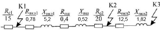 Составляется схема замещения для расчета однофазных токов короткого замыкания и определяются сопротивления.