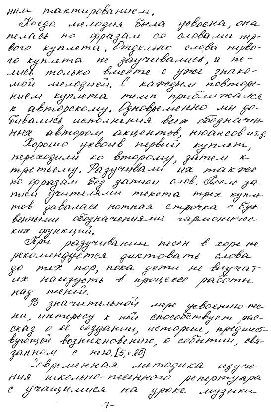 Во введении (3-4 страницы) должны быть отражены следующие пункты: 1. О роли и значении хорового пения на современном этапе развития музыкального воспитания в школе; об общеметодических рекомендациях и правилах разучивания песни (из опыта работы хормейстера). Например: 2. Определение возможного места песни на уроках музыки. Например, песня»Дороги» занимает одно из важных мест на уроках музыки в первом полугодии(1-я четверть) при изучении темы «Музыкальный образ».Учащиеся, осознавая значение элементов музыкальной речи в их взаимодействии, постигают правду музыкального образа, единство содержания и формы, соответствие данной формы конкретному содержанию. 3. Определение задач при работе над разучиваемой песней(воспитательные, образовательные, развивающие).Например, В процессе разучивания песни»---------» решаются следующие задачи: - воспитательные – воспитание чувства патриотизма и т. д; - образовательные – изучение особенностей музыкального языка, обучить учащихся звуковедению легато или нон легато, формировать умение правильно пользоваться мягкой атакой на хорошем опертом дыхании, петь прикрытым звуком и т.д; - развивающие – развитие ладового чувства, развитие ритмического чувства, исполнительских навыков, исходя из эмоционально-образного содержания песни, развитие вокально-хоровых навыков и т.д.