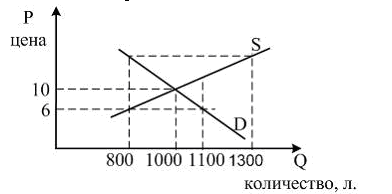 Если мэрия решит установить фиксированную цену 6 су за литр, то возникнет: a. -дефицит 200л. b. -дефицит 300л. c. -излишек 500л. d. -дефицит 100л.