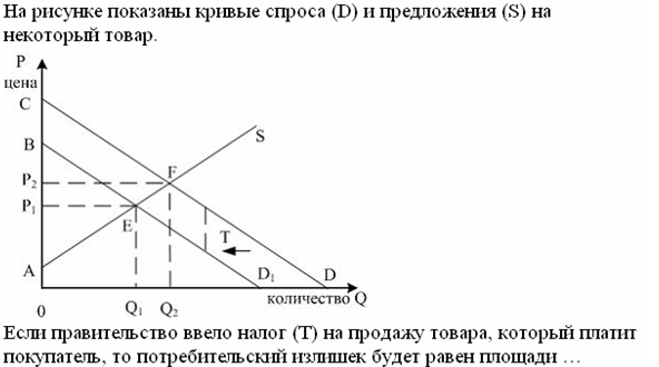 То излишек потребителя составит… a. - 232 b. - 243 c. - 261 d. - 256 13. Если функция спроса на товар задана уравнением Qd=45-3P, а функция предложения – Qs=2P+5, то излишек потребителя составит…. a. - 85,5 b. - 73,5 c. - 80 d. - 92 14. На рисунке показаны кривые спроса (D) предложения (S) на некоторый товар