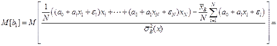 Поскольку выбор значений xi в выборке (xi, yi) можно контролировать (переменные xi можно считать детерминированными), при неограниченном увеличении объема выборки N дисперсия статистики b 1 стремится к нулю как