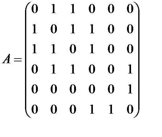 Пример 2.5. Для неориентированного графа примера 2.4 матрица смежности имеет вид