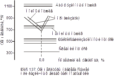Свойства металлов и сплавов зависят не только от химического состава, но и от структуры. С помощью термической обработки (нагрева до определенной температуры, выдержки при этой температуре и подбора различных скоростей охлаждения) можно получить ту или иную структуру (рис. 1.36).
