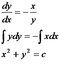 Пример 2: Величина радиуса - значение производной, любая окружность - изоклина. Решение (касательная к полю направления) - -есть касательная к векторам, расположенная на изоклинах.