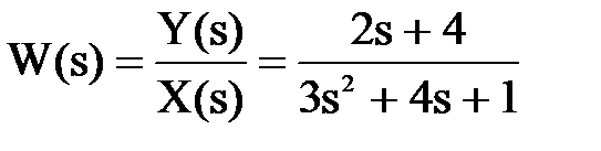 где f(t) - оригинал, F(jw) - изображение при s = jw, j - мнимая единица, w - частота. Преобразование ДУ по Лапласу дает возможность ввести понятие передаточной функции, характеризующей динамические свойства системы. Например, операторное уравнение 3s2Y(s) + 4sY(s) + Y(s) = 2sX(s) + 4X(s) можно преобразовать, вынеся X(s) и Y(s) за скобки и поделив друг на друга: Y(s)*(3s2 + 4s + 1) = X(s)*(2s + 4),