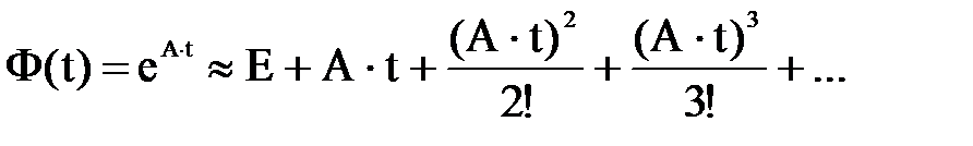 Прямое преобразование Лапласа для данного уравнения дает s.X(s) – X0 = A.X(s), где Х0 – матрица начальных условий, т.е. начальные условия по переменной у, по скорости ее изменения, ускорению и т.д. Отсюда получено Х(s) = X0.[s.E – A]-1 = Ф(s).X0, где Е – единичная матрица, Ф(s) – изображение фундаментальной матрицы Ф(s) = [s.E – A]-1. Оригиналом фундаментальной матрицы является матричный экспоненциал