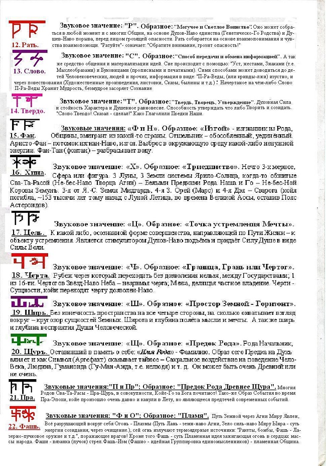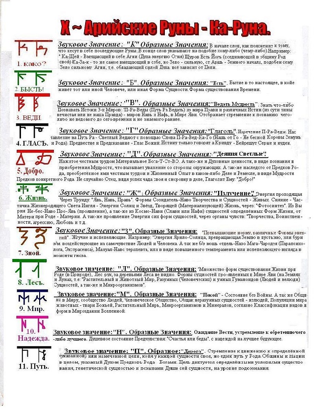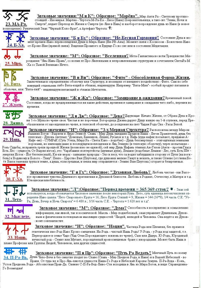 Ошибки: 1) №36 – название сила(а не меч) 2) №23 – название не мара, а какое-то другое 3) Значение ка-руны возможны искажения, но небольшие.