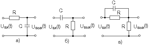 Выполнение заданий этого раздела требует знаний основ теории автоматического управления, в особенности динамики линейных систем автоматического управления, анализа их устойчивости, знаний правил преобразования структурных схем и методов получения дифференциальных уравнений и передаточных функций элементов и систем автоматического управления в целом. Изучая этот материал, следует обратить внимание не только на математические утверждения, но и на особенности их конкретного применения. Варианты 1.01...1.10. Составить дифференциальное уравнение, найти передаточную функцию RC-цепи (рис.1.1) и построить амплитудную и фазовую частотные характеристики (АЧХ, ФЧХ, АФЧХ). Значение параметров указаны в табл.1.1. Литература: /1/, с.52-62.