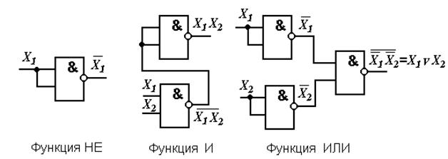 Реализация различных логических функций с помощью элементов И-НЕ
