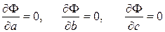 Эта сумма является функцией Ф(а, b, c) трех переменных (параметров a, b и c). Задача сводится к отысканию ее минимума. Используем необходимое условие экстремума: