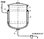 Охлаждающие агенты Для охлаждения до 10-30 0С используют доступные и дешёвые охлаждающие агенты – воду и воздух. По сравнению с воздухом вода отличается большой теплоёмкостью, более высоким коэффициентом теплоотдачи (αводы = 100-400, αвозд. = 10-30) и позволяет проводить охлаждение до более низких температур. До -20 0С можно охлаждать с помощью крепких растворов солей, т.н. рассолов (растворов хлорида кальция, магния и др.). Они являются промежуточными теплоносителями между испарителем холодильной машины и охлаждаемой средой. Для охлаждения до – 40 0С и ниже используют сжиженные газы (СО2, этан, N2). Эти хладагенты циркулируют в специальных холодильных установках, где теплота от охлаждаемой среды отнимается при их испарении. Теплообменными аппаратами (теплообменниками) называются аппараты для передачи тепла от более нагретого теплоносителя к другому, менее нагретому. В химических производствах до 70% теплообменных аппаратов применяют для сред жидкость-жидкость и пар-жидкость при давлении до 1 МПа и температуре до 2000С. При конструировании теплообменников следует решать вопрос о направлении теплоносителей в трубное или межтрубное пространство. Теплоносители, загрязненные и находящиеся под давлением, обычно направляют в трубное пространство. Насыщенный пар лучше всего подавать в межтрубное пространство, из которого легче удалить конденсат. Чистка трубного пространства (в котором вероятнее всего будут выпадать загрязнения) легче, а живое сечение для прохода теплоносителя меньше. Классификация теплообменников Аппараты с рубашкой. Двойные стенки или рубашки широко используются для обогрева реакционных аппаратов, особенно в тех случаях, когда внутри аппарата нельзя установить змеевики (например, в аппарате со скребковой мешалкой и др.). Схема устройства паровой рубашки показана на рис. 19.