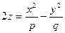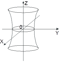 Однополосным, соответственно двуполосным гиперболоидом называется поверхность, имеющая в некоторой прямоугольной системе координат уравнение