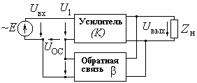 Во входную цепь усилителя подается напряжение обратной связи: