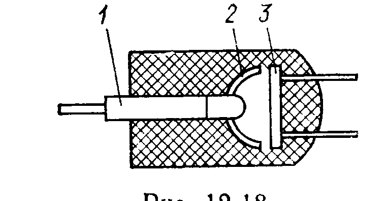Фотодиоды могут работать в фотодиодном и генераторном (вентильном) режимах. В фотодиодном режиме преобразователь подключают к запирающему напряжению (рис. 5.79, а). При увеличении его освещенности возрастает обратный ток, что приводит к увеличению напряжения U нна сопротивлении R н. Напряжение U ни чувствительность можно определить по ВАХ и нагрузочной прямой (рис. 5.79, б). Зависимость тока фотодиода от освещенности практически линейна. Внутреннее дифференциальное сопротивление фотодиода имеет величину порядка мегаомов, поэтому обычно они работают в режиме, близком к короткому замыканию. Полный ток фотодиода I можно рассматривать как сумму I = I т+ I ф= I т+ S Ф, где I т –темновойфототок; I ф – фототок, определяемый световым потоком Ф; S – чувствительность. Значение темнового тока I тсильно зависит от температуры. Фотодиоды – малоинерционные преобразователи. Их постоянная времени имеет порядок 10-7–10-8 с. В генераторном режиме фотодиод включают по схеме, приведенной на рис. 5.79, в,и он сам является источником тока. Фототок, напряжение на нагрузке U н и чувствительность можно определить по ВАХ. Фотоэлектрические преобразователи, используемые для измерения несветовых величин, имеют ряд особенностей. Имеется возможность измерения без контакта с объектом измерения, отсутствует механическое воздействие на объект измерения. Преобразователи чувствительны к силе света и его цвету. Их недостатком является большая погрешность, которая, в основном, определяется усталостью, старением и зависимостью параметров преобразователя от температуры. Вследствие этих особенностей фотоэлектрические преобразователи нашли применение в основном в следующих случаях. 1. При измерениях, в которых преобразователь работает в релейном режиме. Примером может служить измерение частоты вращения вала, имеющего диск с отверстиями. Диск прерывает луч света, падающий на фотоэлектрический преобразователь. Измеряемая скорость преобразуется в частоту электрических импульсов. 2. В качестве прямого преобразователя в компенсационных измерительных приборах. 3. При измерении несветовых величин, когда промежуточной величиной преобразования является величина световая, например, при измерении концентрации вещества в растворе, когда промежуточной величиной является изменение поглощения света раствором. Для уменьшения погрешности измерения фотоэлектрические преобразователи включаются в дифференциальные или компенсационные измерительные цепи. Оптоэлектронные элементы. По степени сложности структурной схемы среди изделий оптронной техники выделяют две группы приборов. Элементарный оптрон (оптопара) представляет собой оптоэлектронный полупроводниковый прибор, состоящий из излучающего и фотоприемного элементов, между которыми имеется оптическая связь, обеспечивающая электрическую изоляцию между входом и выходом. Принцип действия оптронов основан на следующем (рис. 5.80). В излучателе 1 энергия электрического сигнала преобразуется в световую, фокусируется отражателем 2 на фотоприемнике 3, где световой сигнал вызывает электрический отклик.