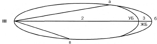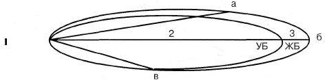сильного влияния мощной поперечно полосатой мускулатуры/Поэтому на ри сунке (рис. 2.6) эта грагоща АБ отсутст вует. Разница ЖБ и УБ_так же характе ризует резерв движенияЛВсе рассужде ния, которые были приведены выше в отношении мышц и связок по ограни чению резерва движения, справедливы и в этом случае, у