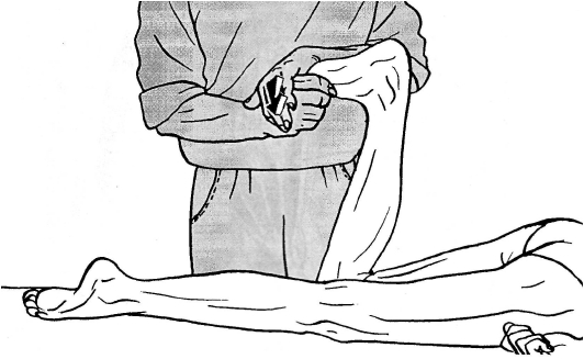 Рис. 9.160. Самостоятельная релаксация мышц-сгибателей стопы и пальцев.