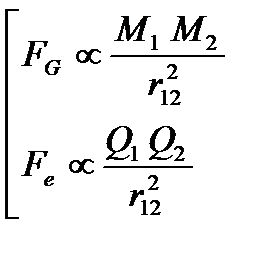 Весьма слабые гравитационные силы на современном этапе развития Вселенной играют определяющую роль в процессах космического масштаба, где электромагнитные взаимодействия оказываются в значительной степени скомпенсированными за счет существования равного количества разноименных зарядов, а коротко действующие ядерные силы проявляются только областях сосредоточения плотного и горячего вещества. Современное понимание механизма возникновения гравитационных сил стало возможным лишь после создания Теории Относительности, т.е. почти через три столетия после открытия Ньютонам закона Всемирного тяготения. Силы инерции. Созданию современной теории гравитации предшествовало осознание глубокой связи, существующей между силами тяготения и псевдосилами инерции. Последние с классической точки зрения не являются мерой реального взаимодействия между телами, а вводятся в неинерциальных системах отсчета чисто формально для обеспечения возможности записи в них уравнений движения, совпадающих по форме со Вторым законом Ньютона. Так все пассажиры внутри равноускоренно движущегося автобуса относительно связанной с ним неинерциальной системы отсчета “летят к стенке” с одинаковым ускорением (равным ускорению автобуса), оставаясь “на самом деле” неподвижными относительно “хорошей” инерциальной системы отсчета, связанной с Землей. Для объяснения этого явления с точки зрения находящегося в автобусе наблюдателя приходится предположить, что при ускорении на все объекты действуют силы инерции, пропорциональные их массе и приводящие к одинаковым ускорениям: (1) При вращательном движении неинерциальных систем отсчета выражение для силы инерции приобретет более сложный вид (в частности появляется слагаемое, зависящее от скорости движения тела - Криолисова сила наличие которой “объясняет” асимметрию размывания берегов рек, текущих в перпендикулярном вращению Земли направлении и вращение плоскости колебаний маятника Фуко). Особенности гравитационных сил. Принцип эквивалентности. Сформулированный И.Ньютоном закон гравитации по форме весьма схож с законом Кулона: (2) что позволяет по аналогии с электрическим зарядом ввести гравитационный заряд (или гравитационную массу) - меру способности тел участвовать в гравитационных взаимодействиях. Гравитационная масса оказывается строго пропорциональной массе инертной (вводимой как коэффициент пропорциональности между силой и ускорением во втором законе Ньютона). Именно эта пропорциональность позволила измерять гравитационные заряды в тех же единицах, что и инертную массу (коэффициент пропорциональности “спрятан” в гравитационную постоянную). Пропорциональность гравитационной силы инертной массе делает ее весьма схожей с силой инерции. В частности при поступательном движении неинерциальной системы отсчета с ускорением, равным ускорению свободного падения, вдоль направления гравитационных сил наступает полная компенсация сил тяготения и инерции - явление невесомости. Помещенный в закрытый лифт наблюдатель, ощущая исчезновение веса не может решить, что произошло в действительности: либо лифт начал падать вниз с ускорением свободного падения, либо исчезло гравитационное поле Земли. Обобщая описанный мысленный эксперимент А.Эйнштейн пришел к формулировке принцип