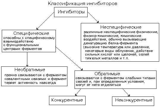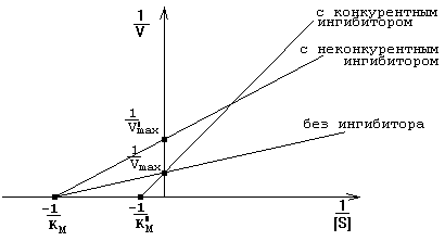 Измеряя скорость реакции при разных концентрациях субстрата в присутствии и в отсутствие ингибитора, можно не только распознать тип ингибирования, но и по степени изменения Км или Vmax количественно оценить степень сродства данного ингибитора к ферменту ("Ферменты", стр. 27-36).