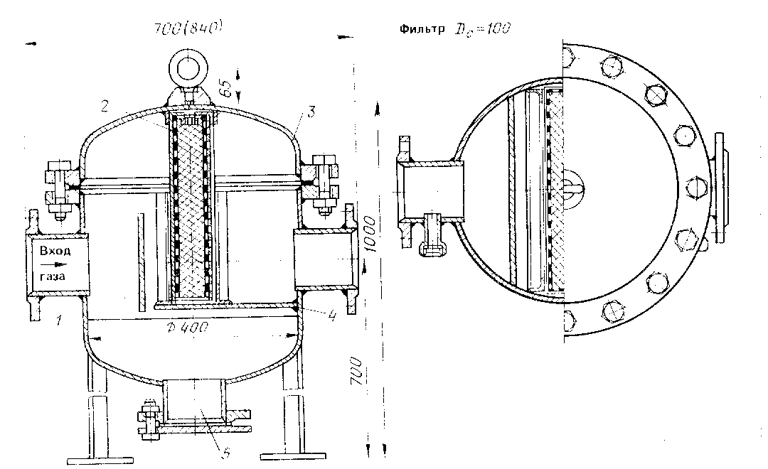 Рисунок 14.3 Волосяной фильтр типа ФГ 1 отбойный лист; 2 - кассета с фильтрующим материалом; 3 - крышка; 4 - корпус; 5 - люк.