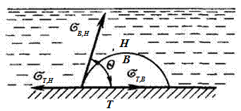 Рис. 2.4.7. Схема избирательного смачивания. Принимая во внимание «силовое» определение коэффициента поверхностного натяжения, рассмотрим их соотношение на рис. 2.4.4. В условиях термодинамического равновесия векторов имеем: