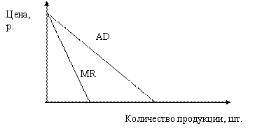 Как показано в табл. 15, предельный доход фирмы–монополиста оказывается всякий раз меньше, чем снизившаяся цена. Например, снижая цену со 112 до 102 рублей за штуку продукции, монополист получает от продажи четвертой единицы продукции 408 рублей валового дохода. Прирост валового дохода составил 72 рубля. Потери из–за снижения цены каждой из первых 3 единиц продукции составляют 4 х 131 – 4х102 = 116 рублей. Линия предельного дохода фирмы–монополиста может быть показана графически.