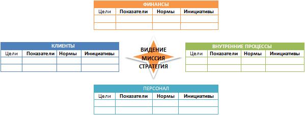 Сбалансированная Система Показателей — это система измерения эффективности деятельности всего предприятия (система стратегического планирования), основанная на видении и стратегии, которая отражает наиболее важные аспекты бизнеса. Концепция Сбалансированной Системы Показателей поддерживает стратегическое планирование, реализацию и дальнейшую корректировку стратегии путем объединения усилий всех подразделений предприятия. Традиционное измерение эффективности деятельности предприятия, сосредоточенное только на финансовых показателях, полученных из систем бухгалтерского учета, быстро устарело и не дает полной картины состояния предприятия, не позволяет построить точный прогноз его развития. Появилась необходимость в более совершенных и эффективных способах глобальной оценки деятельности всего предприятия. Современные подходы к стратегическому менеджменту призывают обращать внимание на такие нефинансовые составляющие как, персонал, бизнес-процессы, инновации, отношения с потребителями. С этой целью Роберт Каплан и Дейвид Нортон определили четыре перспективы, являющиеся основными группами стратегических целей, достижение которых оценивается ключевыми показателями: · Финансовая: Какую ценность мы представляем для наших акционеров? · Клиентская: Какую ценность мы представляем для наших клиентов? · Внутренних процессов: Какие процессы мы должны усовершенствовать, чтобы обеспечить конкурентоспособность предприятия? · Обучения и развития: Имеются ли программы развития, мотивации и роста?